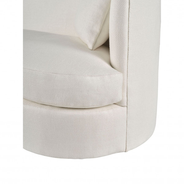Полностью обитый диван изогнутой формы. Мягкие подушки и сиденье и плотная спинка.